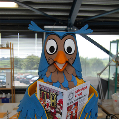 When we have decided how big the set elements should be, we do research concerning the wool colours and size. After this, we start creating the shapes of the elements out of foam. In this specific case Willeke sculpted the head.